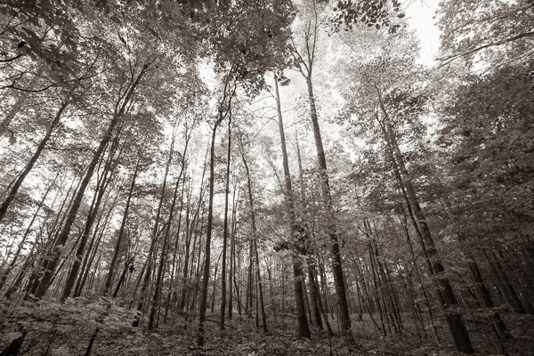 View of forest canopy looking straight upwards